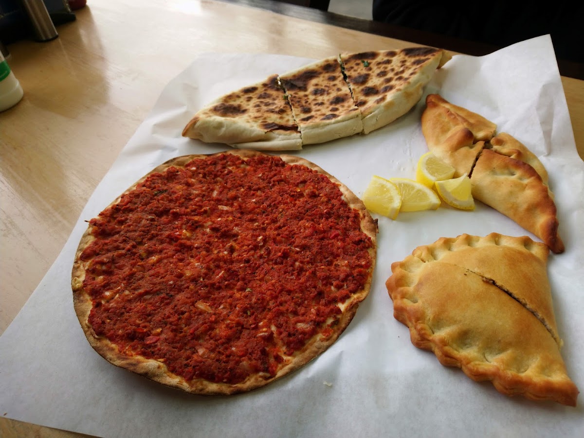 I was in the mood for middle eastern food. Originally, in search of the typical salad, lule kabob, shawarma, something of that nature. I rely on highly positive reviews and came across Sipan Bakery goodness, they did not disappoint! I was so happy to have found this place as this will be my new go to spot! Arrived on a Thursday afternoon and they were quite busy with what seemed to be a group of ladies enjoying themselves. Nonetheless, the owner was sweet and quick with our order. Got the Chicken Shawarma pizza, Lamahjoon and Kibbee (Kofta). The pizza was bomb flavorful and delicious, lamahjoon typical and Kibbee delightful! I thought the Kibbee would be a side of Kofta like the meatball but I was a bit surprised at what I received but it was sooooo good! IG Palate_Journey DOG FRIENDLY - Outdoor seating